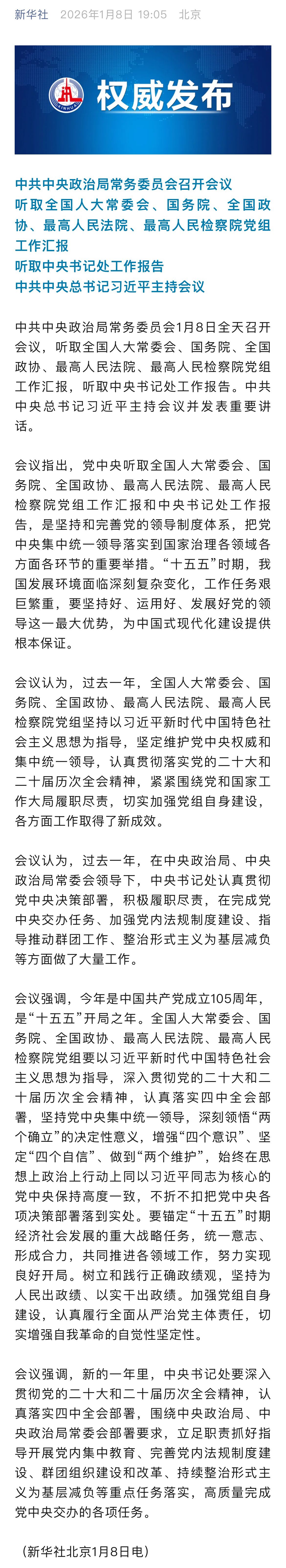 中共中央政治局常务委员会召开会议 习近平主持会议