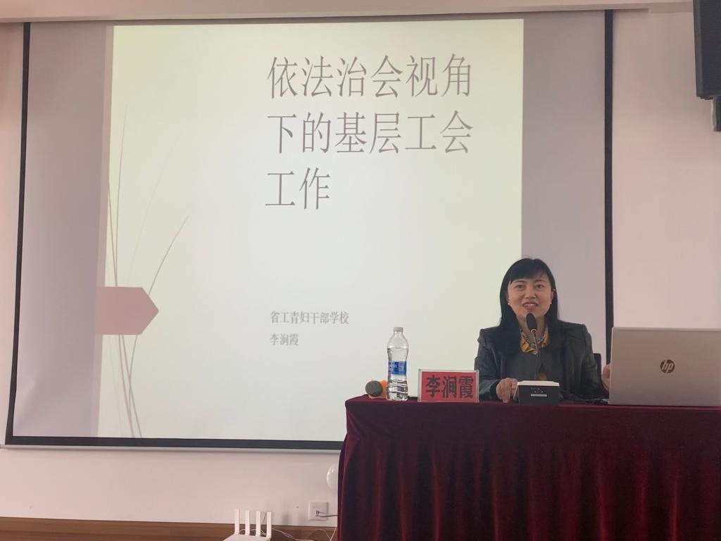 下午,工青妇干校党委书记、校长李涧霞从依法建会、依法治会、依法管会、依法履职等方面讲解了如何在依法治会的视角下如何开展基层工会工作,进一步夯实工会干部理论素养。
