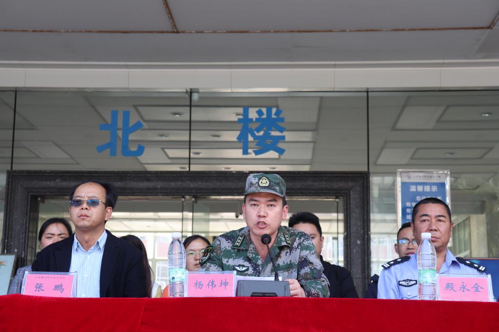 学院院长李蕾作军训动员致辞,个旧市武装部政委杨伟坤对参训学生和教官提出三点希望,学院党委书记张鹏宣布军训正式开始,学院副院长曲向哲主持会议,学院领导班子成员出席动员会。