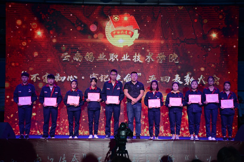 学院党委书记李蕾在表彰大会上致辞。李蕾希望广大团员青年要牢固树立坚定的共产主义理想信念,树立正确的人生观、世界观和价值观,努力学习现代科学文化知识,不断提高自身的思想道德素质和科学文化素质,要以一名光荣的共青团员的标准严格要求自己,以身作则,率先垂范,充分发挥先进青年的模范作用,树立跟党走中国特色社会主义道路的理想信念,为党和人民的事业薪火相传、兴旺发达源源不断地输送自己的力量,更好地承担起中国特色社会主义事业建设者和接班人的责任,在实现中华民族伟大复兴的征途中续写新的篇章。学院副院长曲向哲宣读了表彰决定。在场的领导和嘉宾为获得云锡控股公司“五四红旗团支部”、“优秀共青团干部”、“优秀共青团员”和获得学院的10个“五四红旗团支部”、55名“优秀共青团干部”、110名“优秀共青团员”进行了颁奖。
