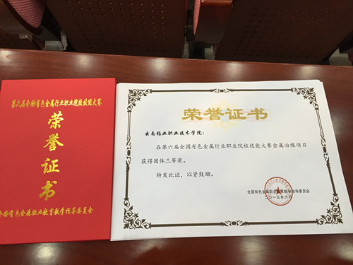 云锡职业学院冶金技术专业转炉炼铜赛队于2015年6月15-19日参加了在甘肃省兰州市兰州资源环境职业技术学院举办的“2015年第六届全国有色金属行业职业院校技能大赛”。