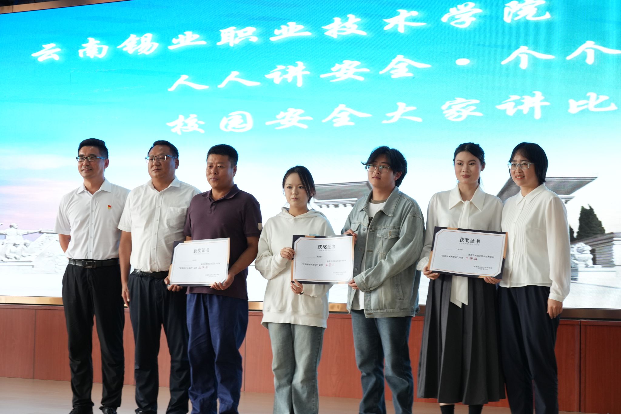 《“零门槛”漩涡:从不屑到崩溃的刷单陷阱》揭露刷单骗局从“小利诱惑”到“大额诈骗”的惯用套路,警示大学生警惕 “天上掉馅饼”的陷阱,在真实校园场景中传递防诈意识;《生命之光,共筑校园消防的铜墙铁壁》以铿锵宣讲,强调预防为主、生命至上的理念;《触电惊魂》聚焦用电安全,通过生动的情节和人物塑造,展现了在日常学习和生活中可能遇到的用电安全隐患,以及正确的应对措施……选手们聚焦网络安全、消防安全、心理安全等选题,以演讲、朗诵、情景剧、相声等形式,用声情并茂的语言生动诠释校园安全的重要性,展示才华的同时将校园安全知识深植于心。此次比赛活动有效激发广大师生学习安全知识、掌握应急技能的内生动力,有力推动安全理念内化于心、外化于行,为学院高质量发展提供坚实保障。