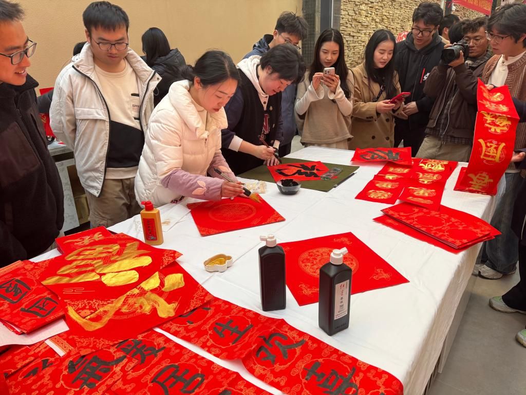 互动环节,大家满脸欣喜,和面、擀皮、包馅、下锅……在团结协作和欢声笑语中一盘盘热气腾腾、年味十足的饺子陆续出锅、香气四溢,新员工之间的情谊悄然升温,活动氛围愈发温馨。最后,云锡文联书画协会的青年代表提笔挥毫,在红纸上书写春联和福字,将美好祝愿融入笔墨之间赠予新员工们,为大家传递了云锡大家庭的文化温度与组织温暖。