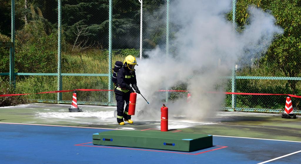 在电气火灾处置项目中,选手熟练运用消防设备,反应速度快,灭火技巧准,充分展现专业应对能力。