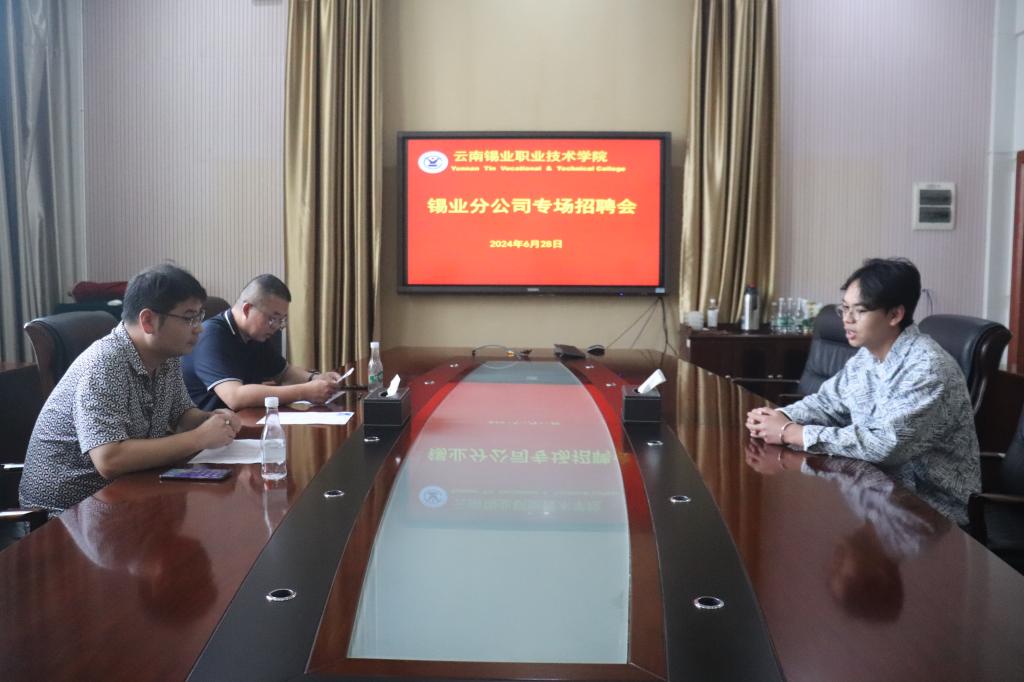 6月28日上午,华联锌铟、文山锌铟、卡房分公司和锡业分公司到学院开展招聘面试,将岗位送进校园,为学子们提供了一个便捷、高效的求职平台,切实实现从校园到职场的无缝对接。