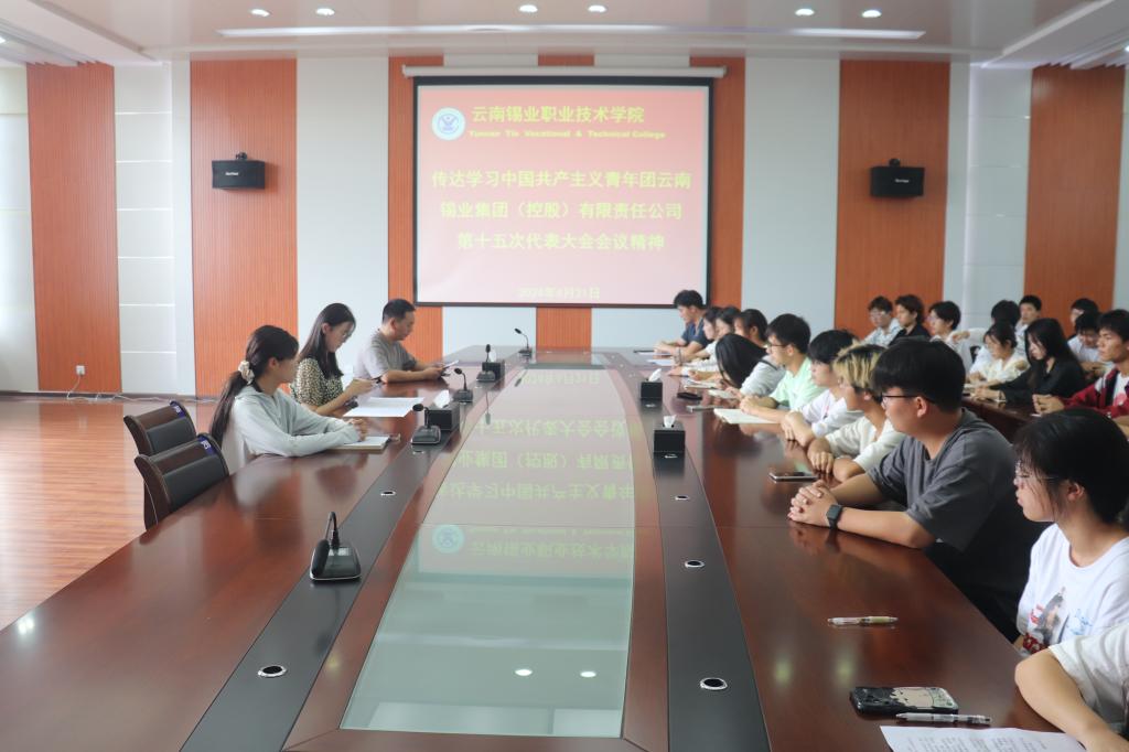 6月21日上午,学院在大会议室召开会议,传达学习共青团云南锡业集团(控股)有限责任公司第十五次代表大会会议精神,参加共青团云南锡业集团(控股)有限责任公司第十五次代表大会的团员代表张凝向在校各班级团支书和20名学生团员代表全面传达了会议精神。