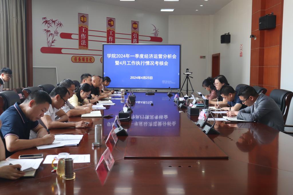 4月25日上午,学院在中会议室召开 2024年一季度经济运营分析会暨4月重点工作执行情况考核会,认真总结学院一季度经济运营总体情况、工作成效,并安排部署二季度工作重点。学院领导班子成员及各部门负责人参加会议。