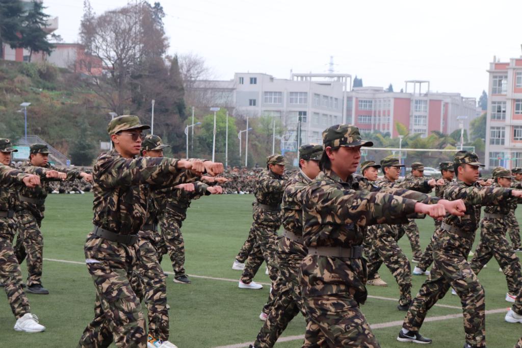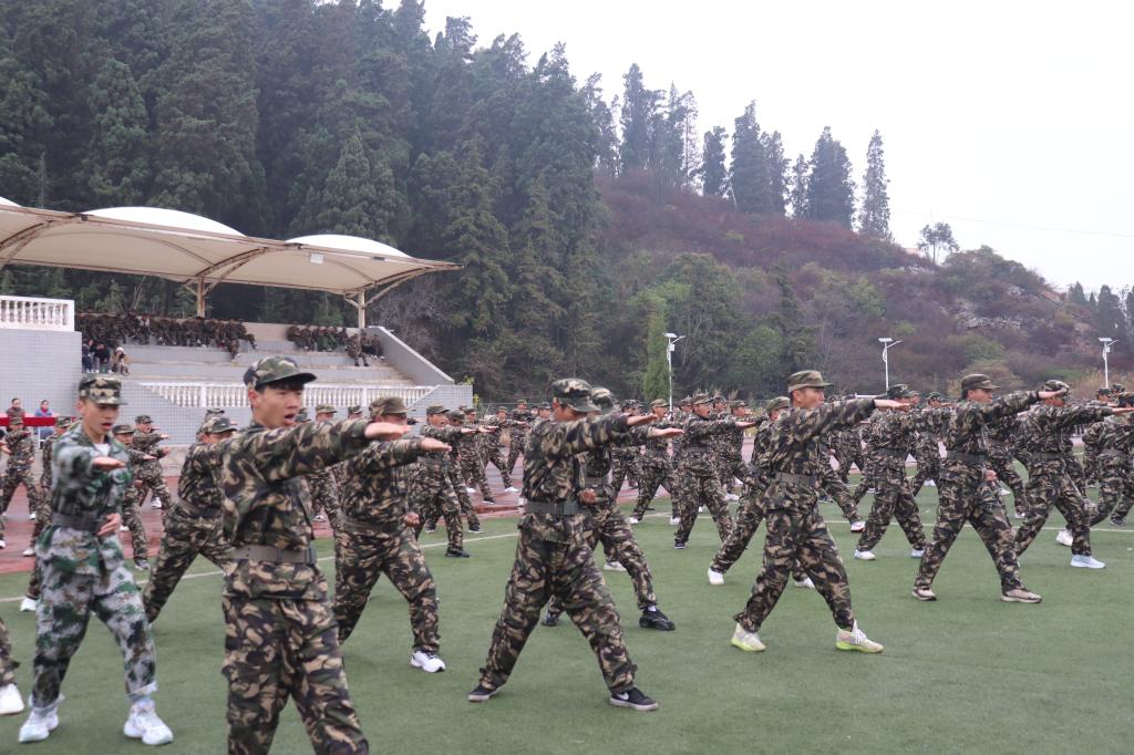 “全体都有”“稍息”“立正”“向左转”“跑步走”……随着教官铿锵有力的口令,同学们动作干净利落、整齐划一,目光如炬,身姿挺拔,展现了“请党放心,强国有我”的决心。