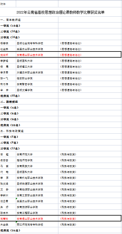 为深入学习贯彻习近平总书记关于学校思政课建设的重要指示批示精神,充分发挥高校思政课立德树人关键课程作用,2022年7月,省委教育工委举办了2022年全省高校思想政治理论课教师教学比赛,共评出一等奖19人、二等奖31人、三等奖48人、优秀奖114人,学院思政课教师施亚坪、高慧玲以扎实的专业素养、巧妙的教学方法、鲜活的教学语言赢得评委老师的肯定,在本次比赛中荣获三等奖。