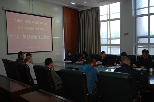 1月15日上午,职业学院在三号教学楼小会议室召开2016年社会治安综...