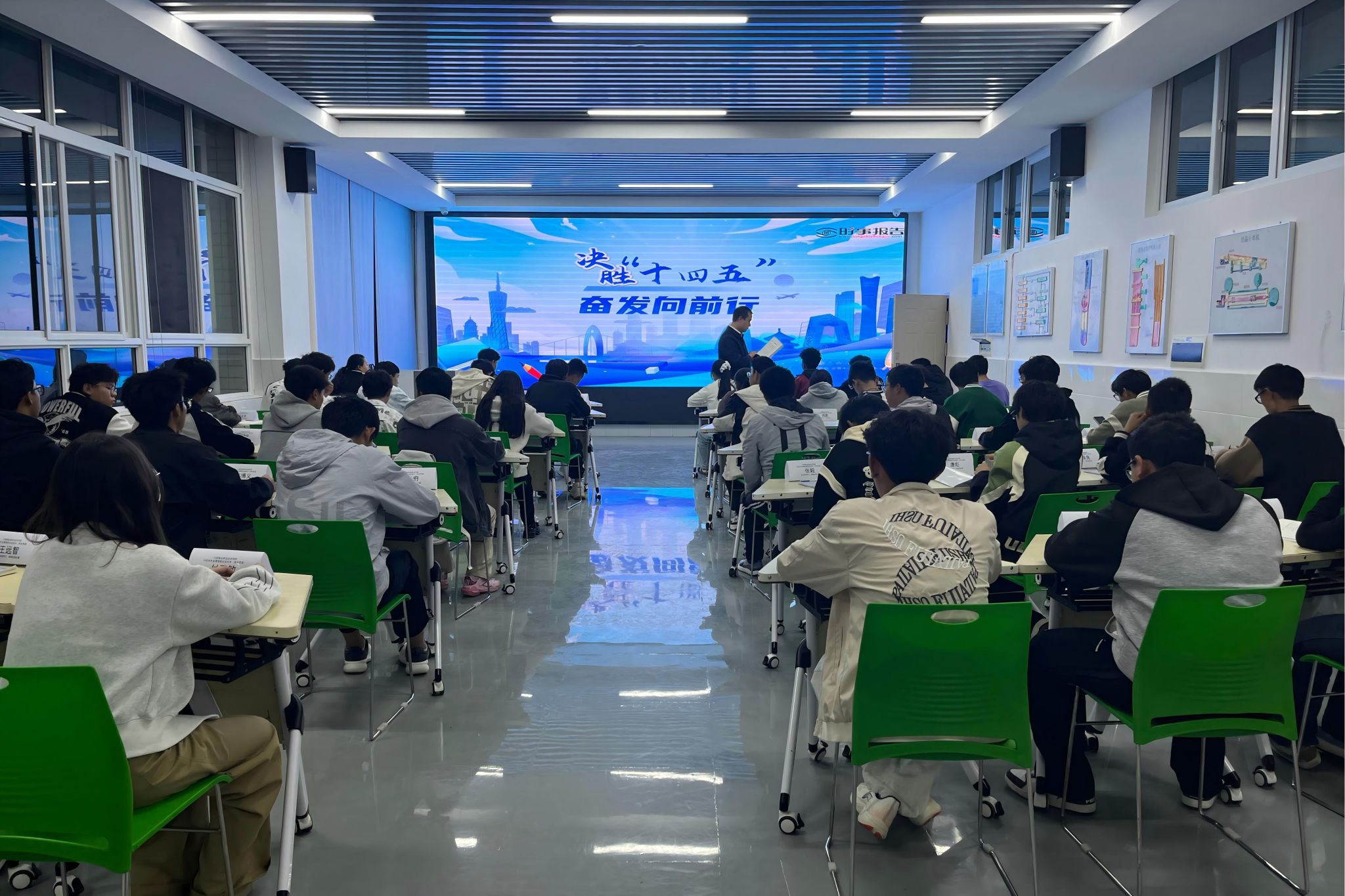10月29日晚,学院党委书记俞鑫在知行楼虚拟仿真实训室为25级有色金属智能冶金技术(高本贯通班)学生讲授形势与政策专题思政课“决胜‘十四五’,奋发向前行”。