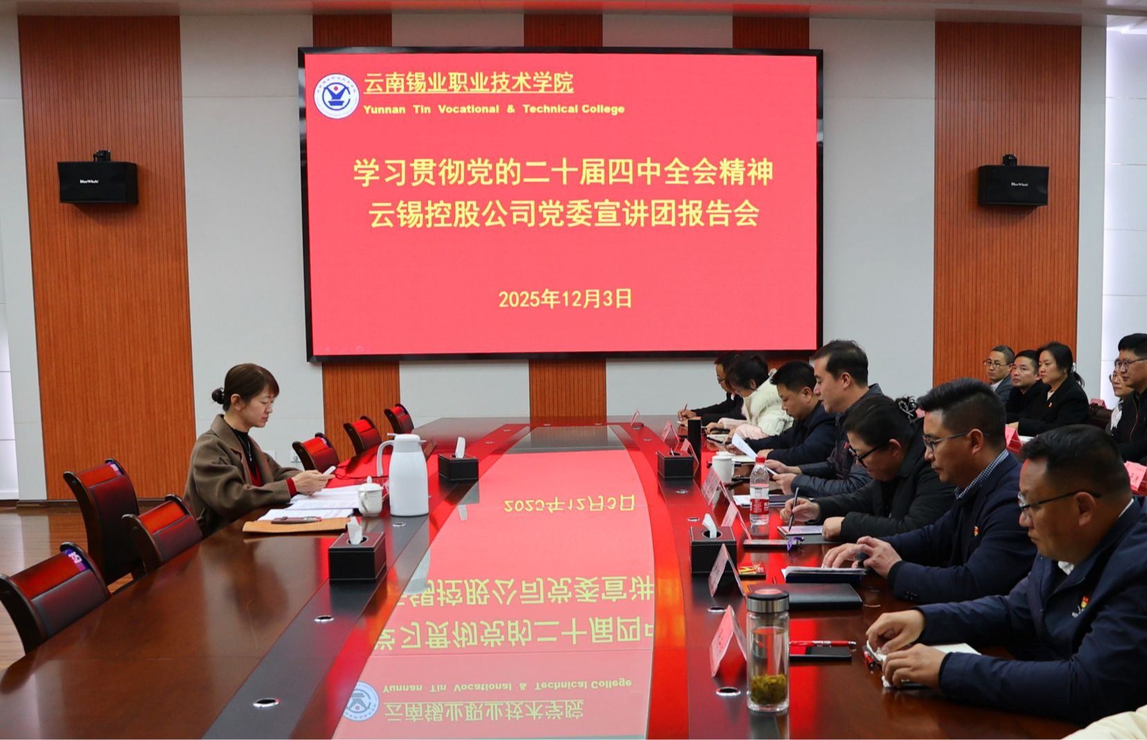 12月3日,控股公司党委宣讲团成员、党委委员、副总经理吴君到学院宣讲党的二十届四中全会精神。