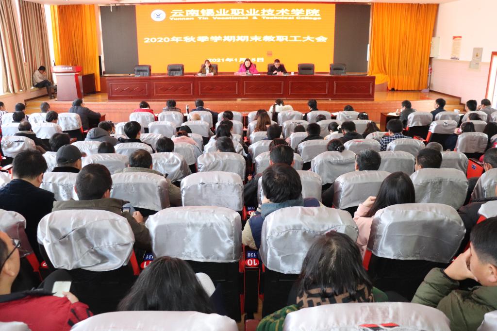 1月15日,学院在教学楼508报告厅召开2020年秋季学期期末教职工大会。回顾总结2020年工作,明确2021年工作目标,安排部署寒假安全工作。学院院长李蕾作讲话,副院长曲向哲主持会议,副院长张惠芬出席会议。李蕾谈到,过去的一年,学院紧紧围绕2020年办学经营目标,整合办学资源,优化专业布局,突出办学特色,提升办学质量,严抓干部队伍建设,强化重点工作落实,全力降本增效,奋起攻坚克难,较好地完成了各项重大任务和学校年...